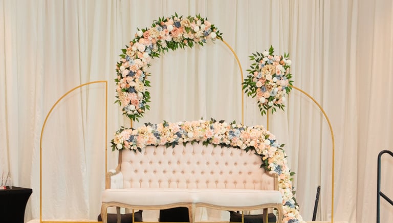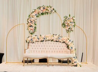 Customized for your needs and theme. These backdrops can include balloons, florals, lighting, and more.